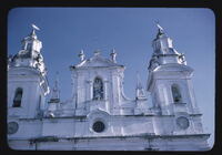 Cathedral of Para - Detail: upper section of main facade and towers Colonial Churches Belem Cathedral of Para Detail: upper section of main facade and towers -