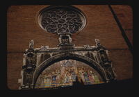 Toulouse Eglise de la Dalbade - main facade upper section Churches Toulouse Eglise de la Dalbade 15th and 16th centuries Main facade Upper section Tympanum Relief Sculpture Polychrome