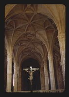 Jerónimos Monastery in Belem - Interior Lisbon Belem Convento dos Jeronymos de Belem 1499 Church of anta Maria Church Interior Ceiling Fan tracery Crucifix -