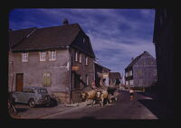 Town Street scene - Oxdrawn cart