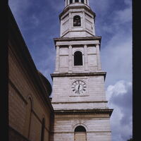 - EN church (building), arches, cornice components, columns (architectural elements), clock, building stone, blind arches