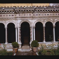 - EN cloister, arches, roof tiles, courtyard, cornice components