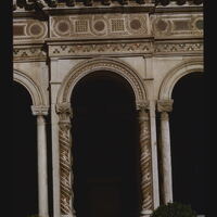 - EN cloister, arches, roof tiles, courtyard, cornice components, bas-relief (sculpture), applied decoration, mosaic (visual work)