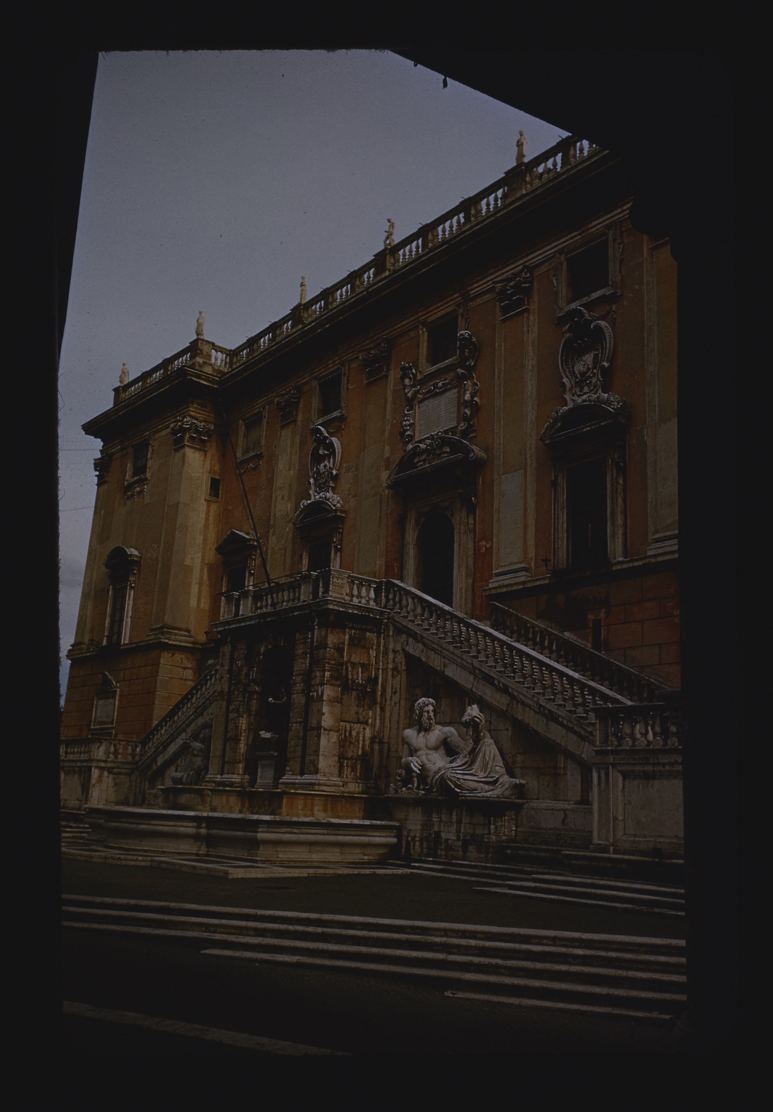 - EN Italy Rome Churches Piazza del Campidoglio Begun ca. 1538 Finished 17th Century Designed by Michelangelo Palazzo del Senatore Facade Sculpture