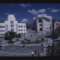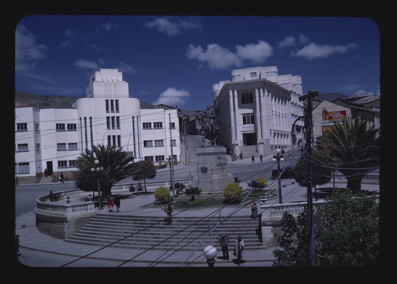 - EN Plaza Del Estudiante Public Library at right US-Bolivia Public Health Building