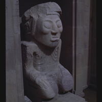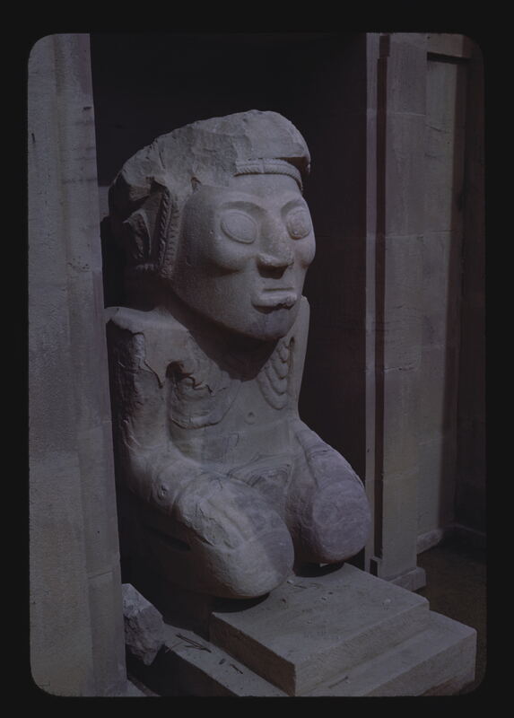 - EN Archeology - Pre-Columbian Tiahuanaco Sculpture-Large Seated Female Figure Detail Museum Entrance-La Paz Color 17-2
