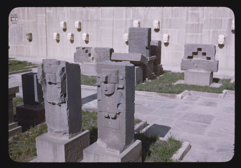 - EN Archeology - Pre-Columbian Tiahuanaco General View of Museum Stone Sculpture in Foreground Museum-La Paz Color 17-2