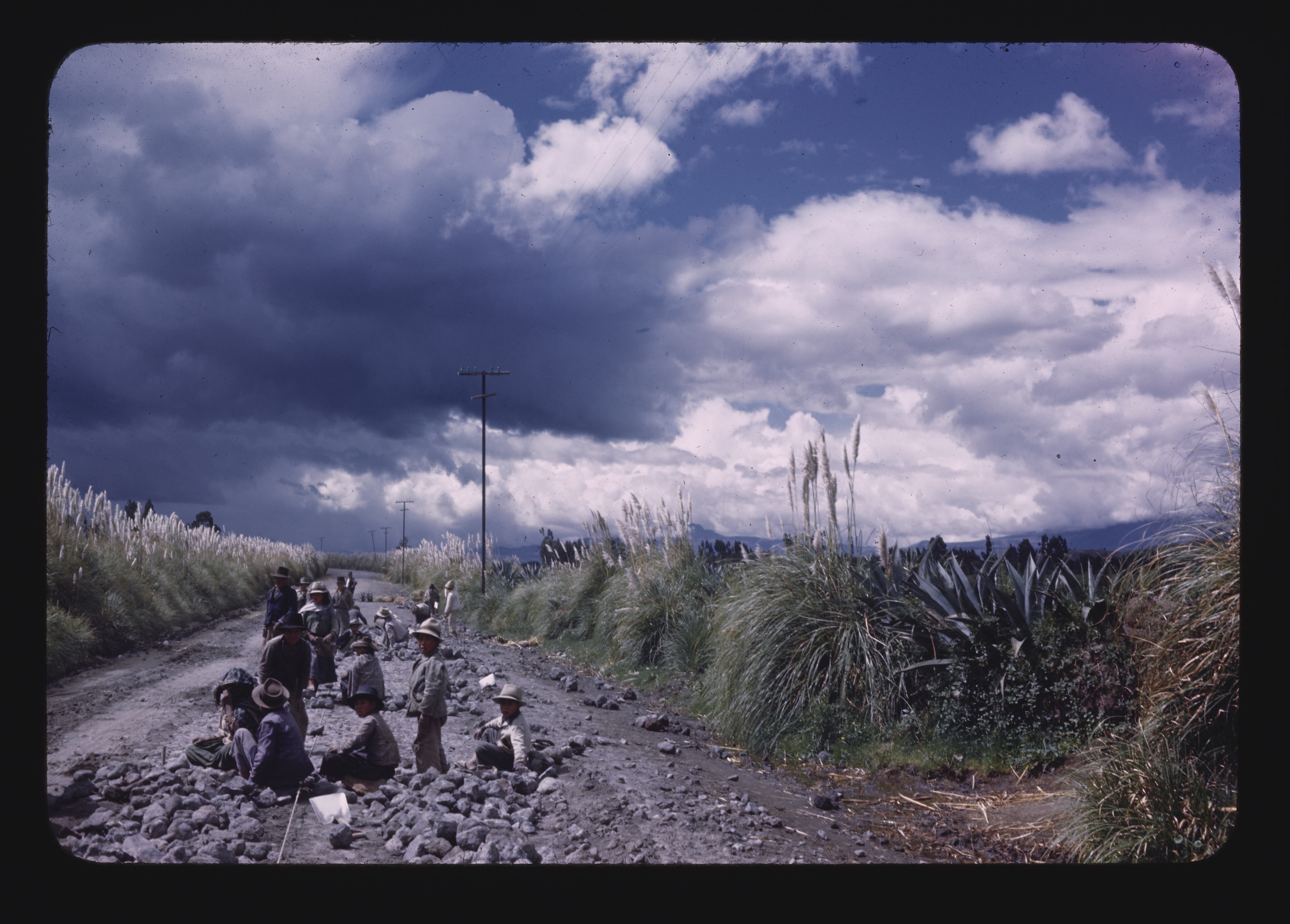 - EN Indian Life Near Cayambe Section of Pan American High-way Indians Laying Cobblestones on Road