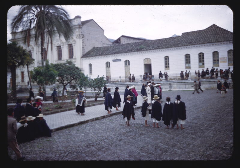 - ES Vida indígena - Otavalo - Día de Mercado - Esperando la procesión religiosa frente a la Catedral de San Luis - Fondo