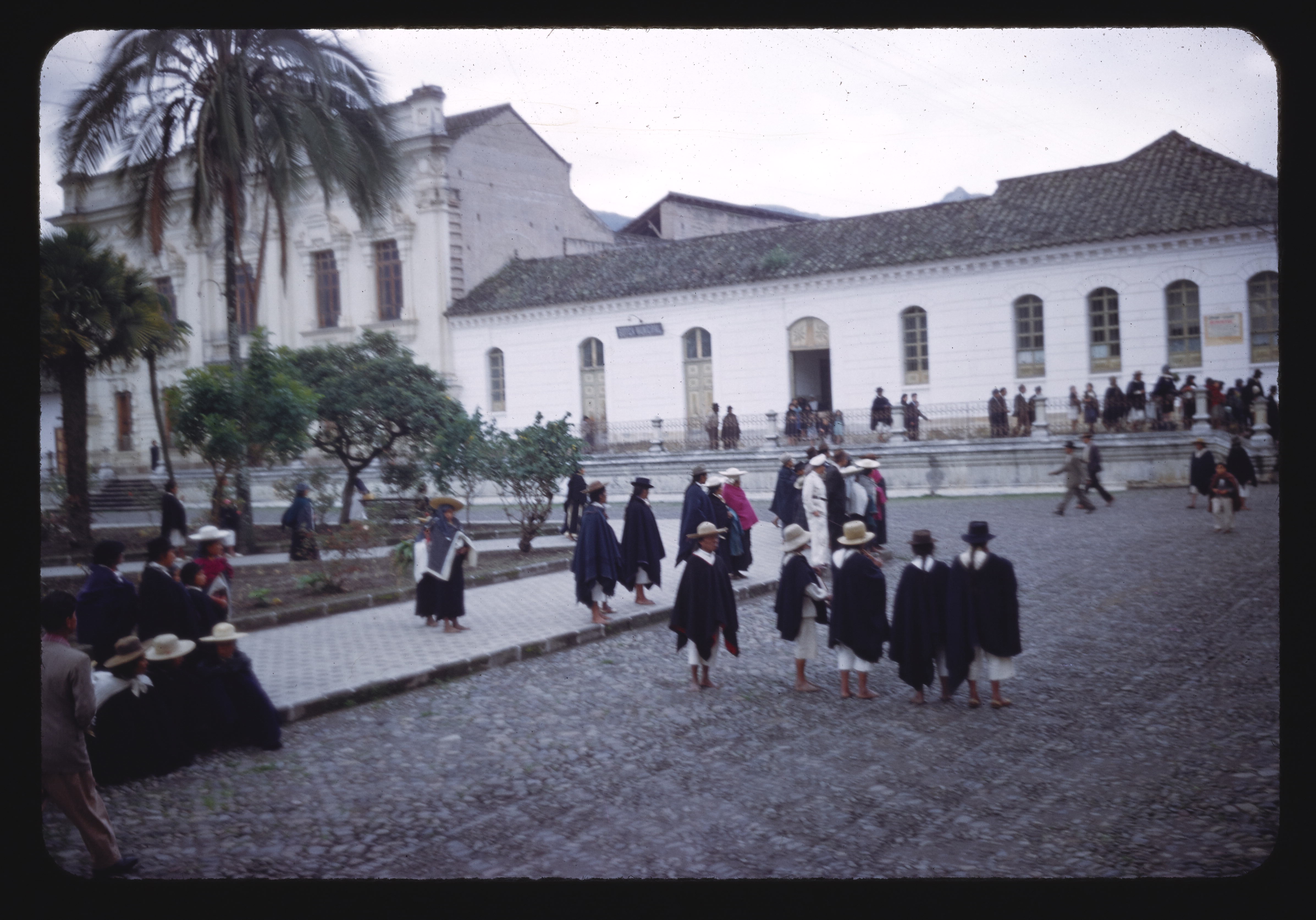 - EN Indian Life Otavalo-Market Day Indians Waiting for Religious Procession Cathedral of San Luis-Background