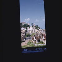 - EN churches (buildings), buildings (structures), church towers, arches, windows, dwellings, trees (woody plants), clouds, anonymous people