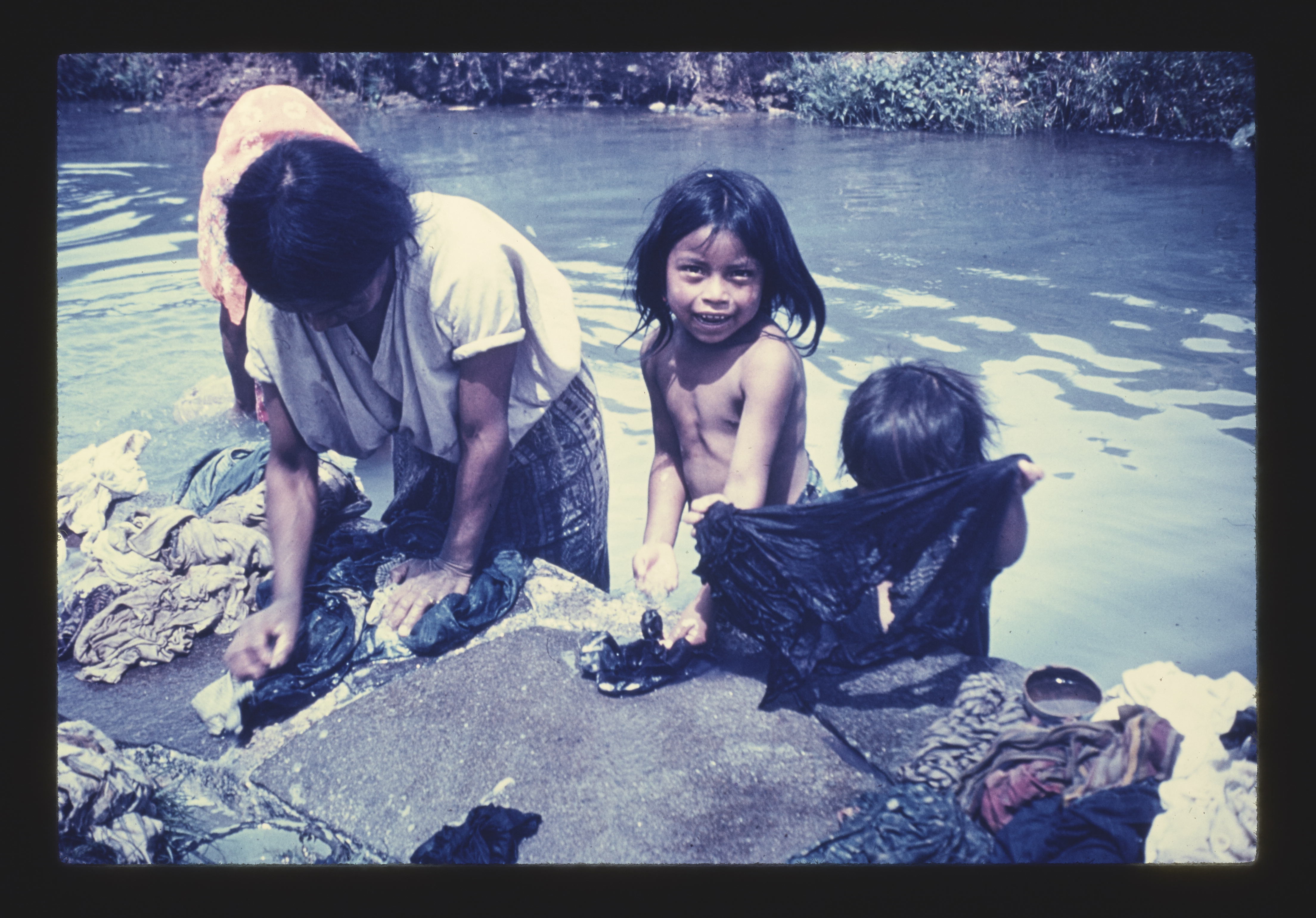 - EN indigenous people, pools (bodies of water), children (people by age group), women (female humans), washing (cleaning), clothing