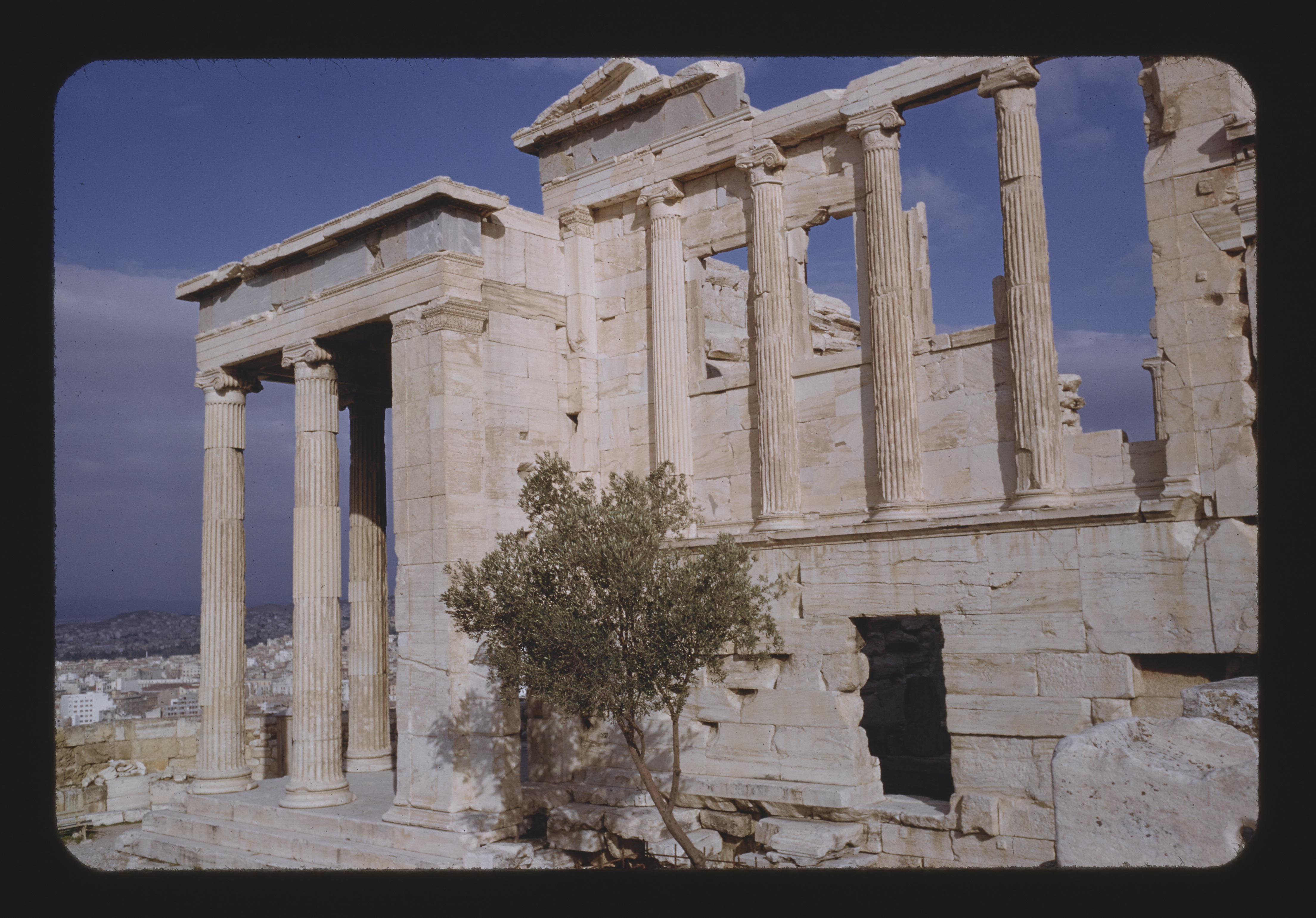 - EN acropolises, temples (buildings), Ionic columns, building stone, ruin marble, Olea europaea (species)