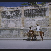 - EN Port-au-Prince Street scene Women riding donkeys