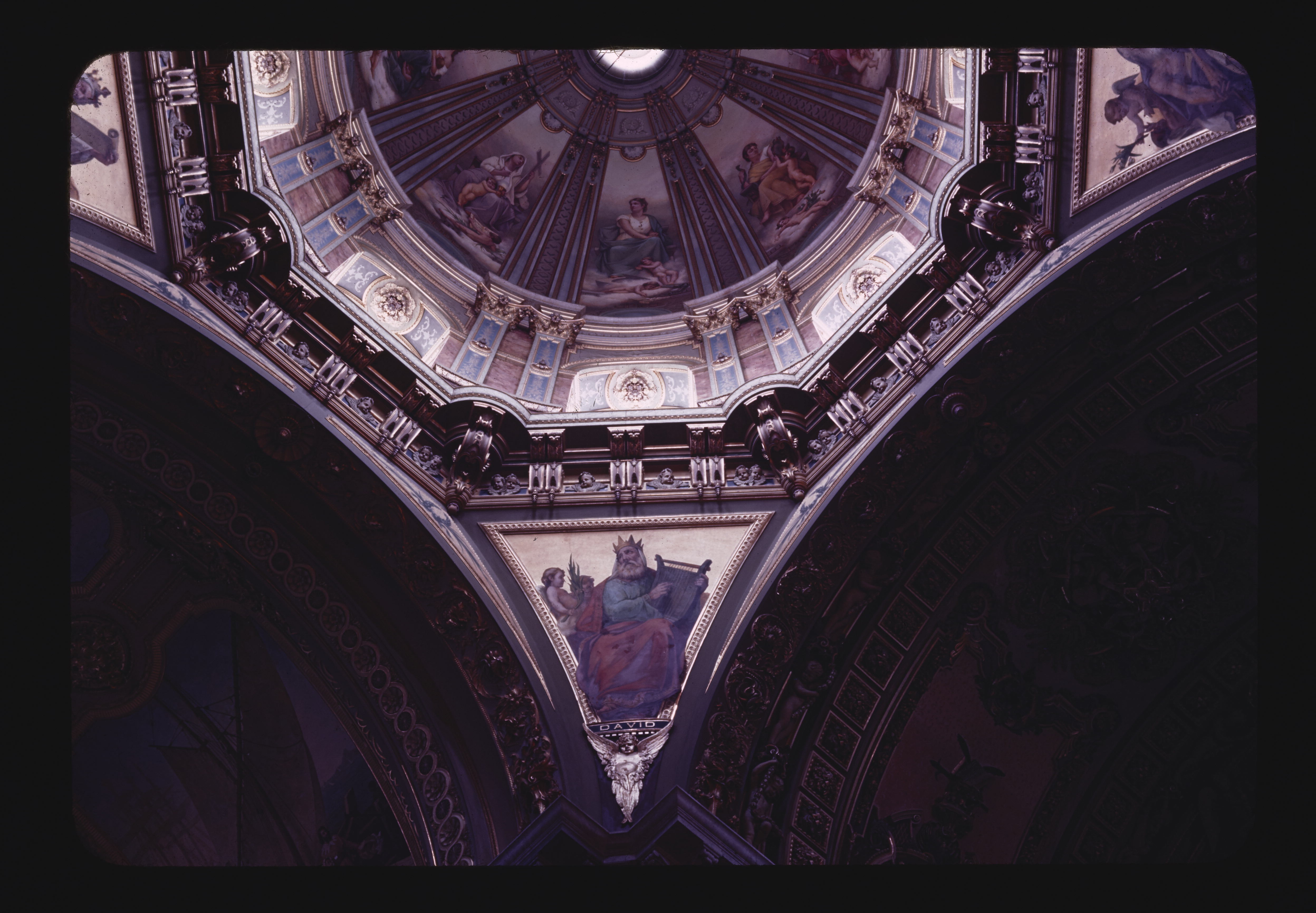 - EN churches (buildings), religious buildings, ornaments (object genre), interior, architectural sculpture, domes (architectural elements), arch, dome or vault components, ceiling paintings, ceilings, pendentives