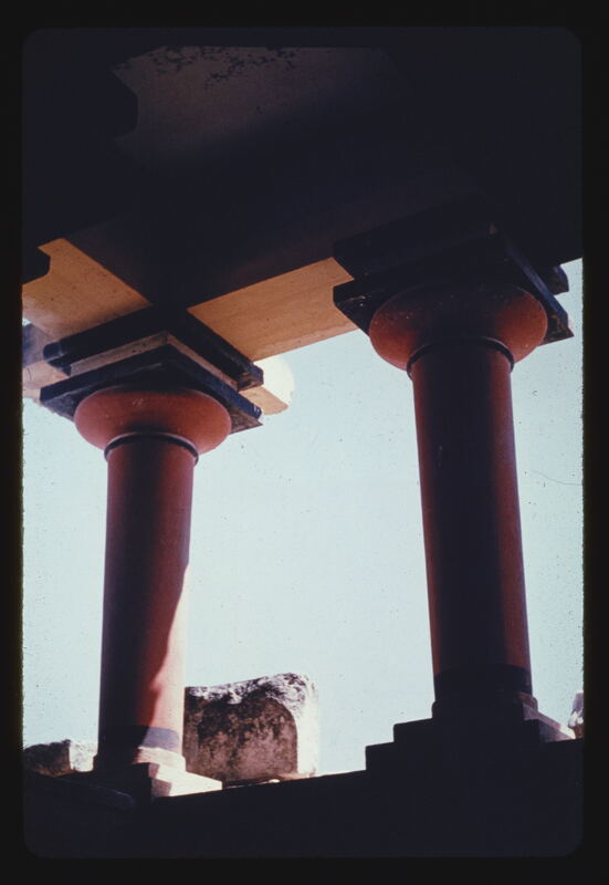 - EN Aegean Ca. 16 00 B.C. Mycenae (Crete). Palace of King Minos. Porch of the bull. Columns. Color 4-1