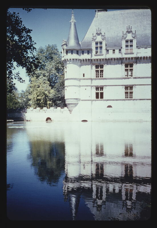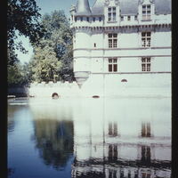 - EN France Azay-le-Rideau. Chateau South side. Left section with reflection in moat