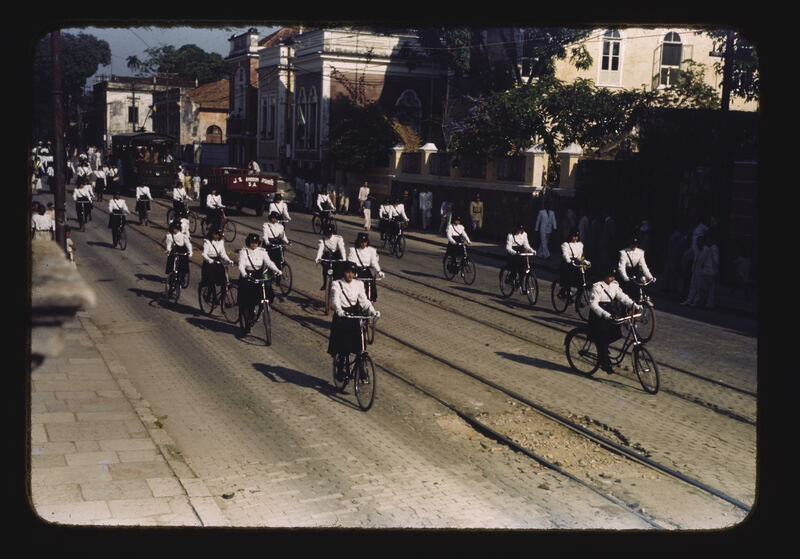 - EN parades, anonymous people, buildings (structures), trees (woody plants), streets, bicycles