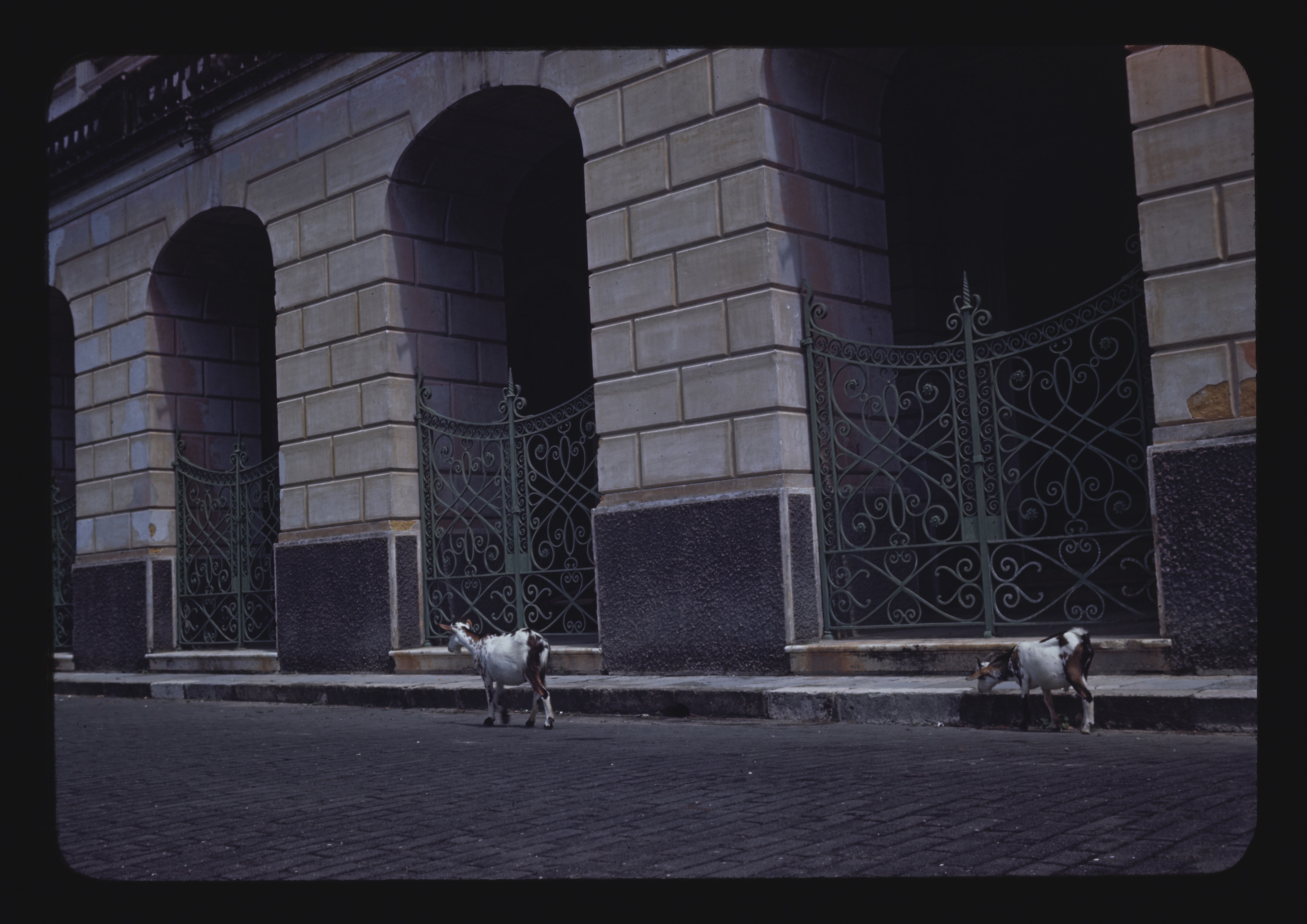 - EN Teatro Amazonas (opera house) wrought iron gates Goats in street