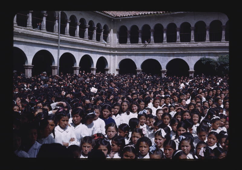 - EN churches (buildings), cloisters, arches, roofing tile, indigenous people, schoolchildren (age group)