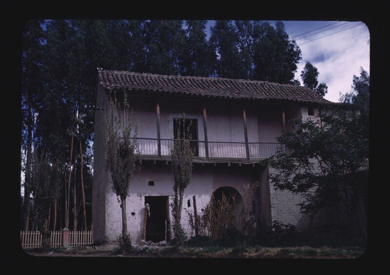 - ES teja, cubierta a dos aguas, adobe, ladrillo, árbol