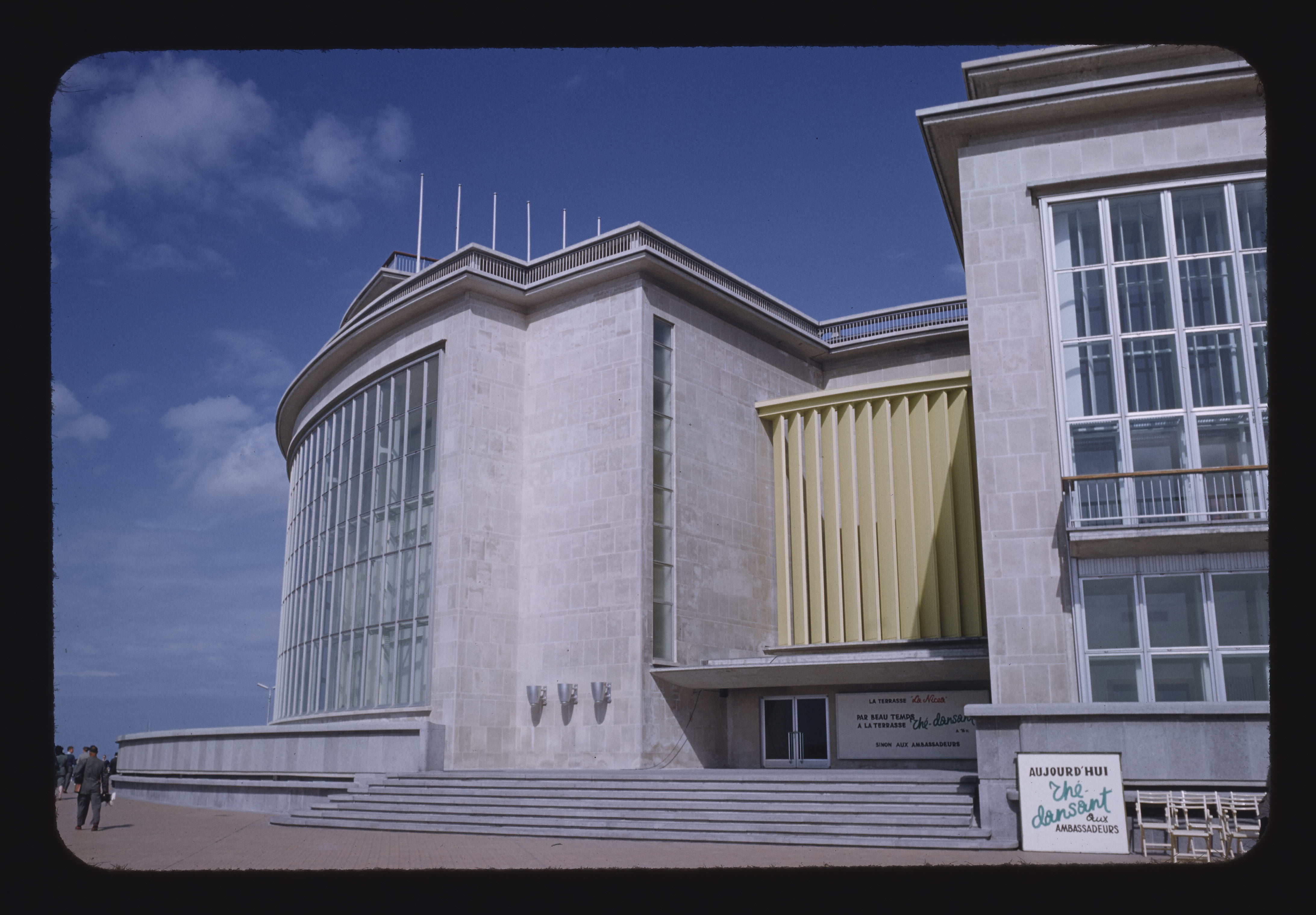 - EN casinos (entertainment buildings), fronts (architectural), windows, elevations (building divisions), pedestrians, entrances, stairs, promenades (walkways)