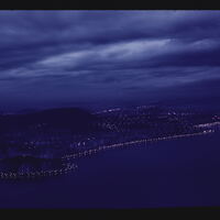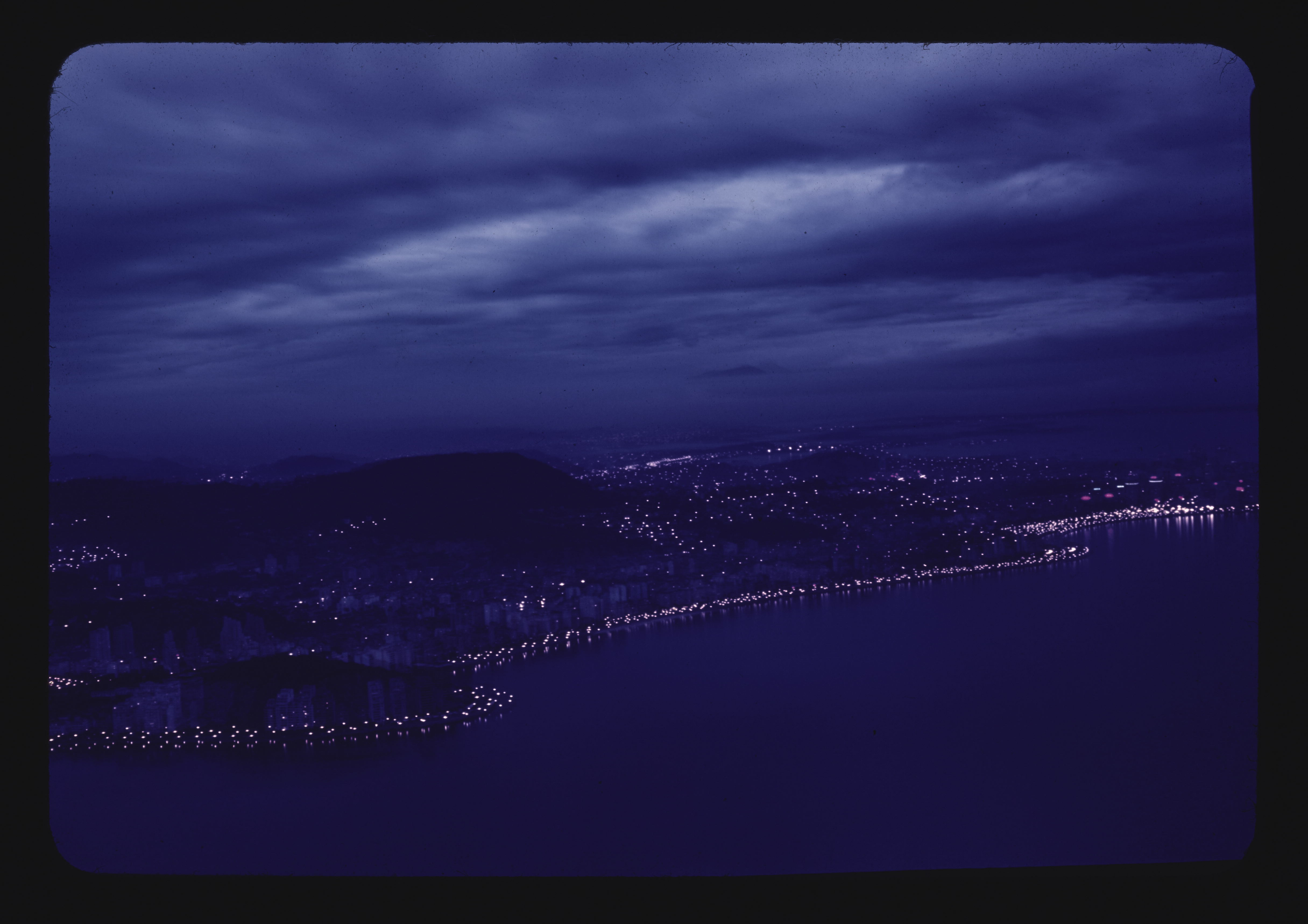 - EN bays (bodies of water), coastlines, buildings (structures), skylines, evening, cities, night
