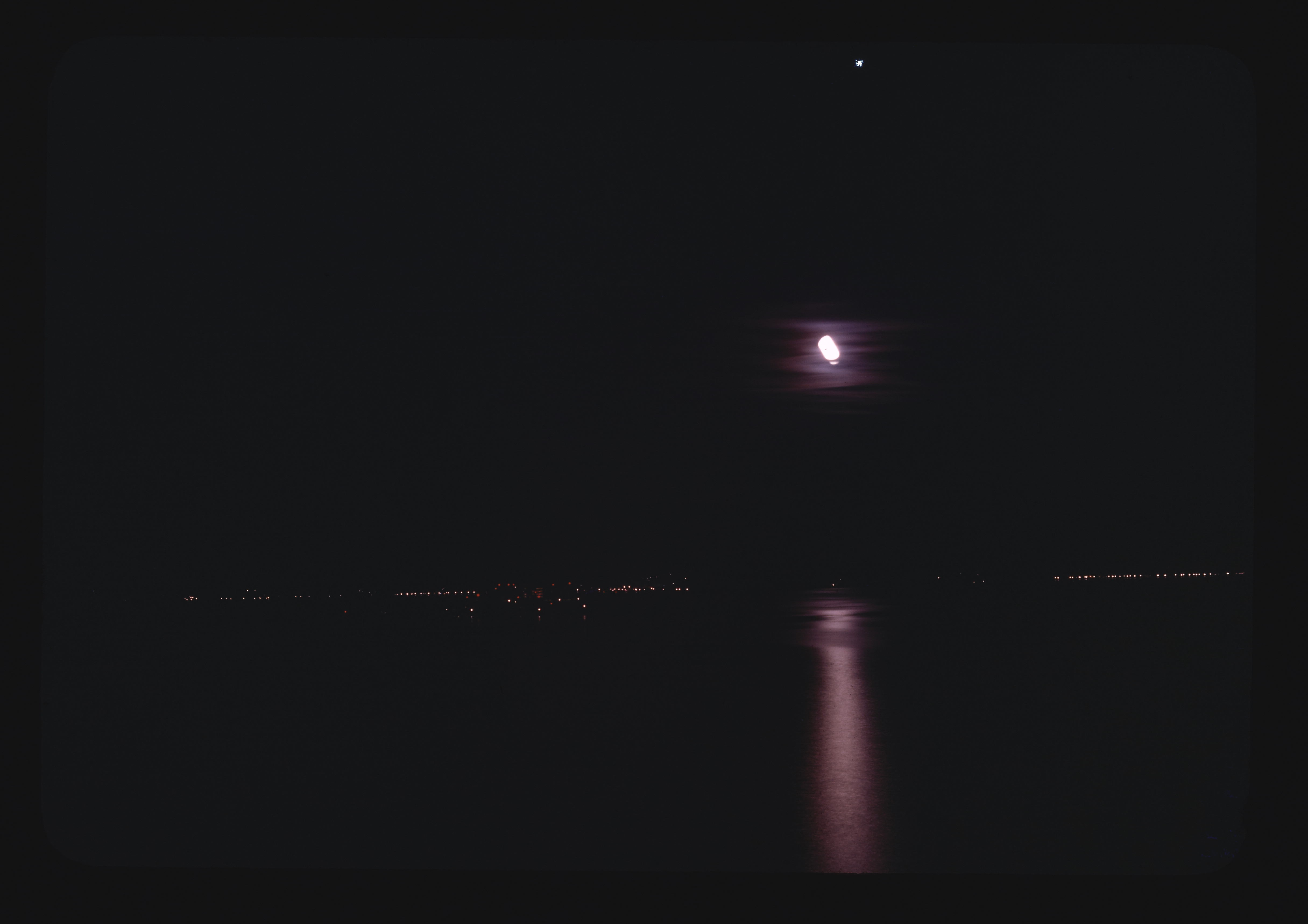 - EN bays (bodies of water), coastlines, buildings (structures), skylines, cities, night, moonlight