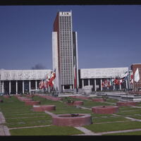 - ES universidades, fachadas, elevaciónes (división de construcción), céspedes, motivo (elemento de diseño), banderas, esculturas