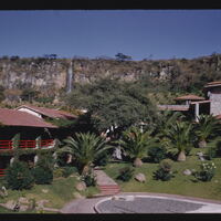 - PT spas (estabelecimento de saúde), árvores (plantas lenhosas), edifícios (estruturas), varandas, calçadas, colinas, jardins (espaços abertos), cachoeiras (corpos naturais de água)