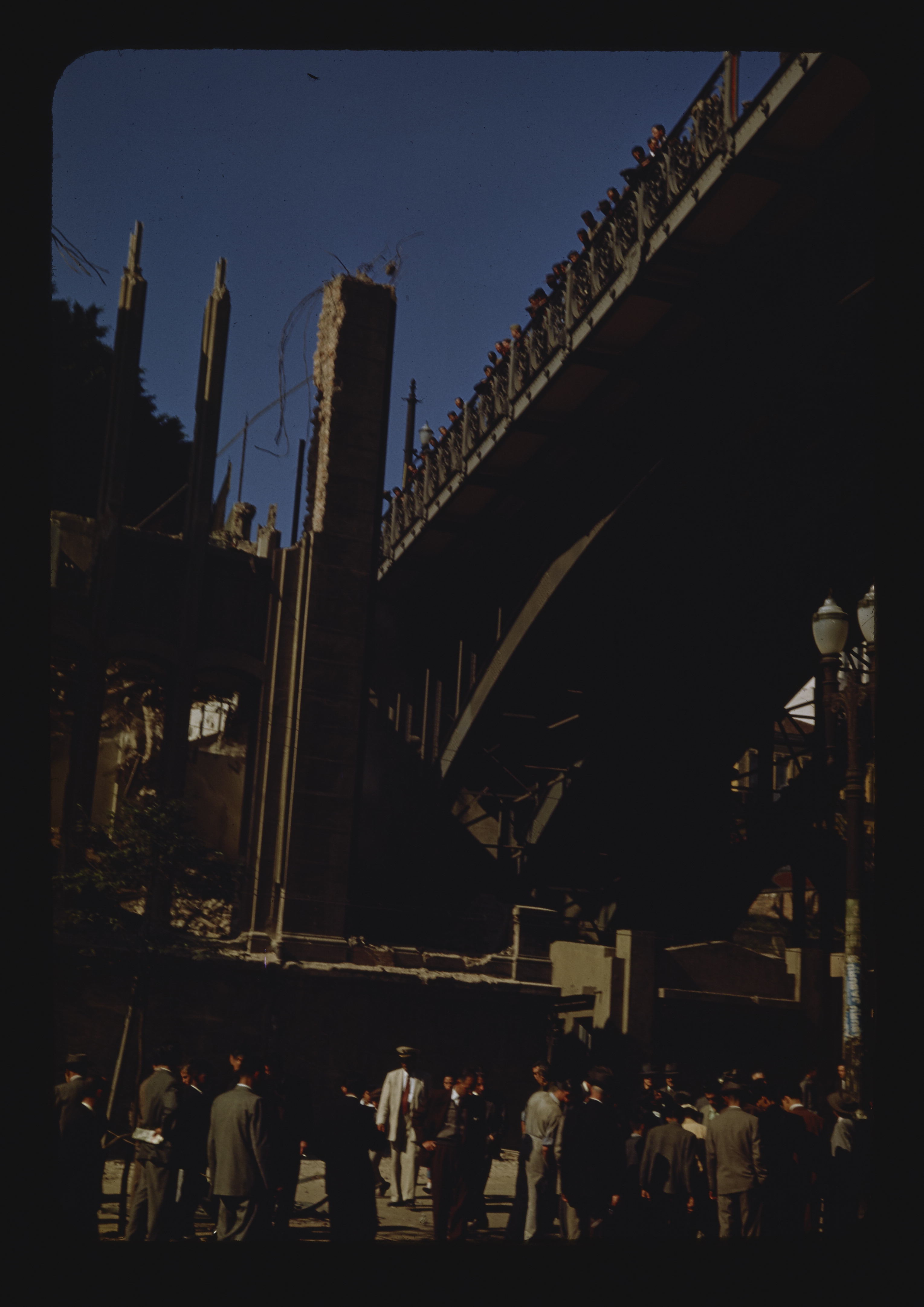 - EN overpasses, automobiles, anonymous people, buildings (structures), trees (woody plants)