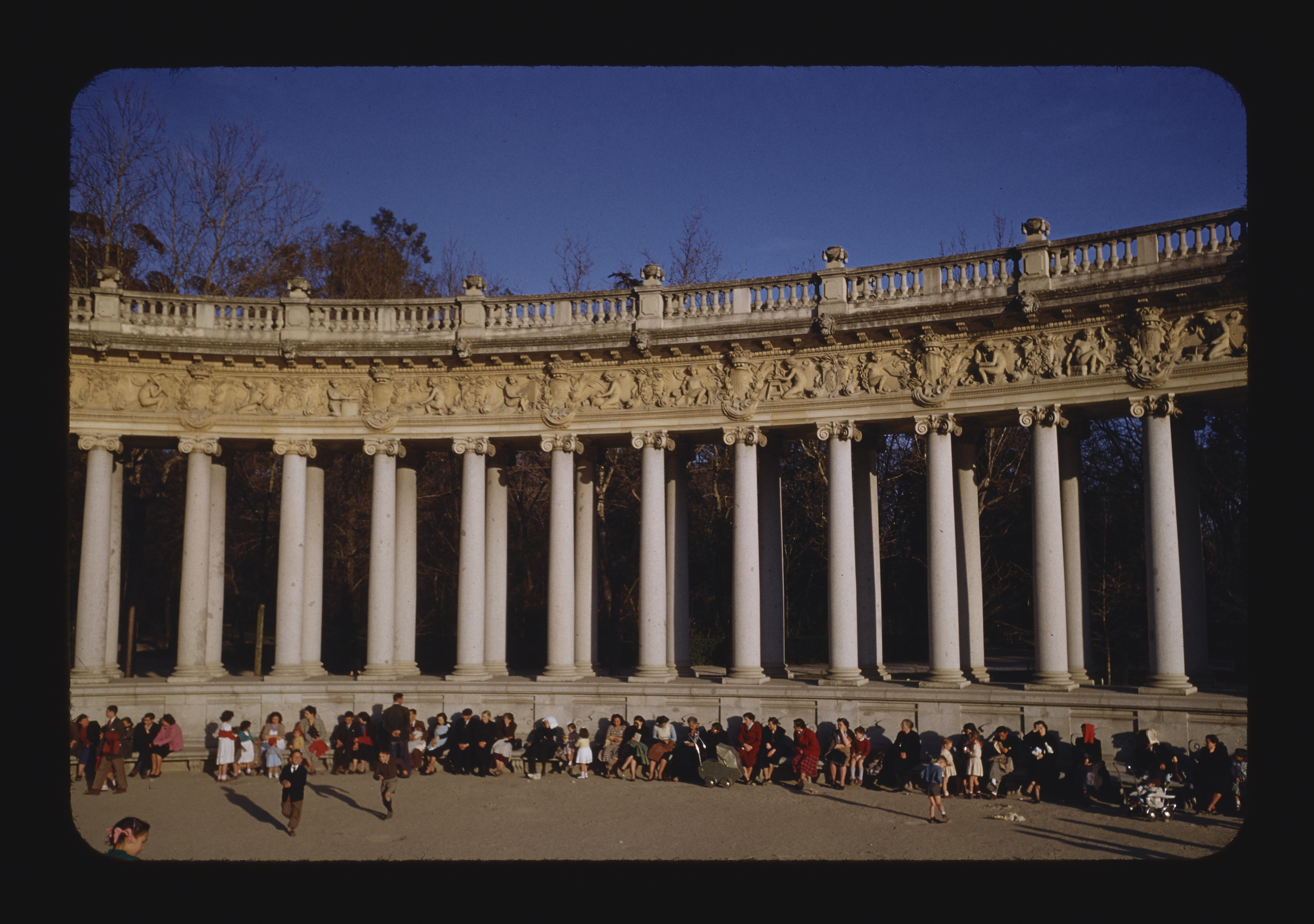 - EN parks (public recreation areas), trees (woody plants), anonymous people, balustrades, columns (architectural elements)