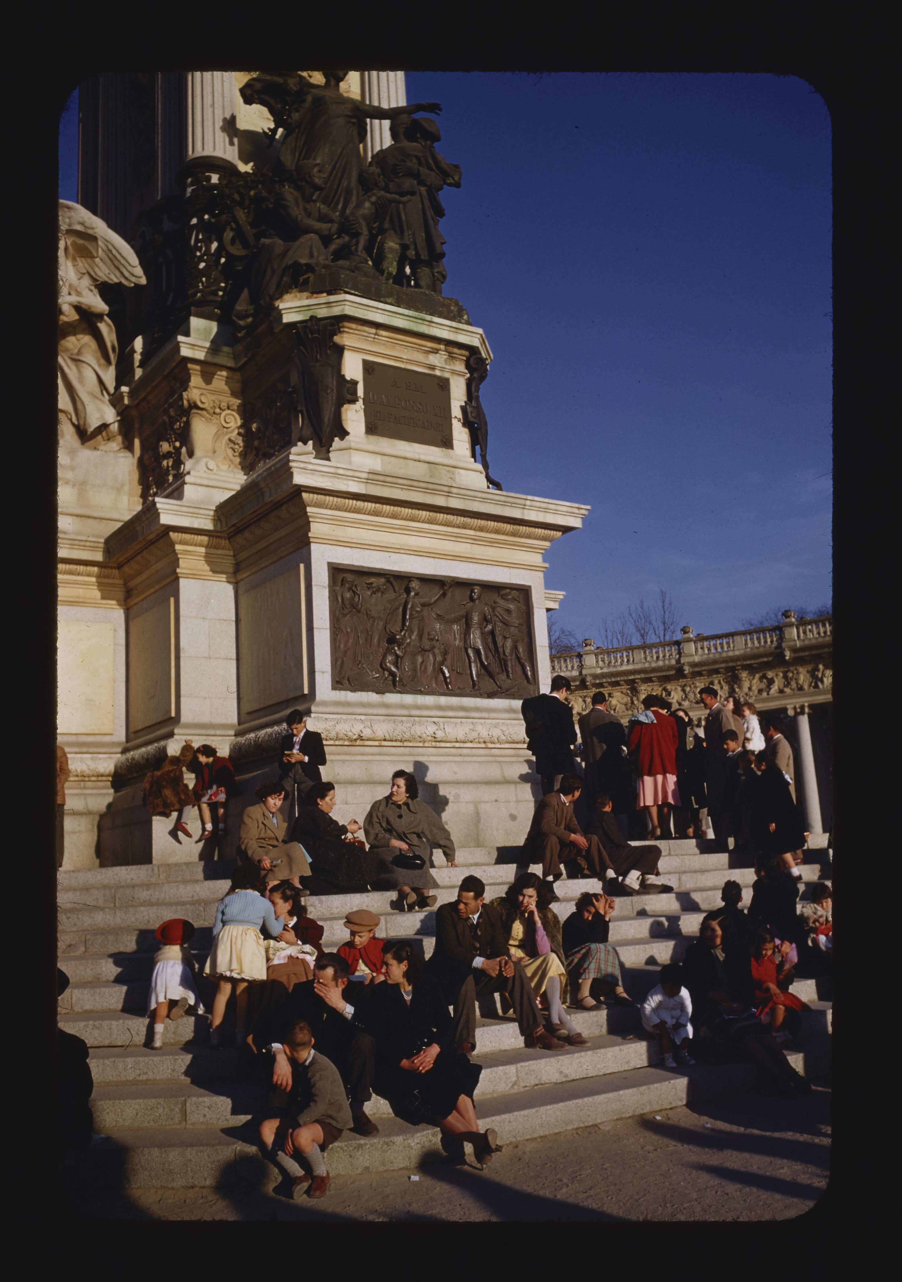 - ES parques públicos (área recreacional), árbol, personas anónimas, balaustradas, columnas (elemento arquitectónico), estatuas, componentes de cornisa