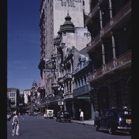 - ES edificios, árbol, automóviles, signos, personas anónimas