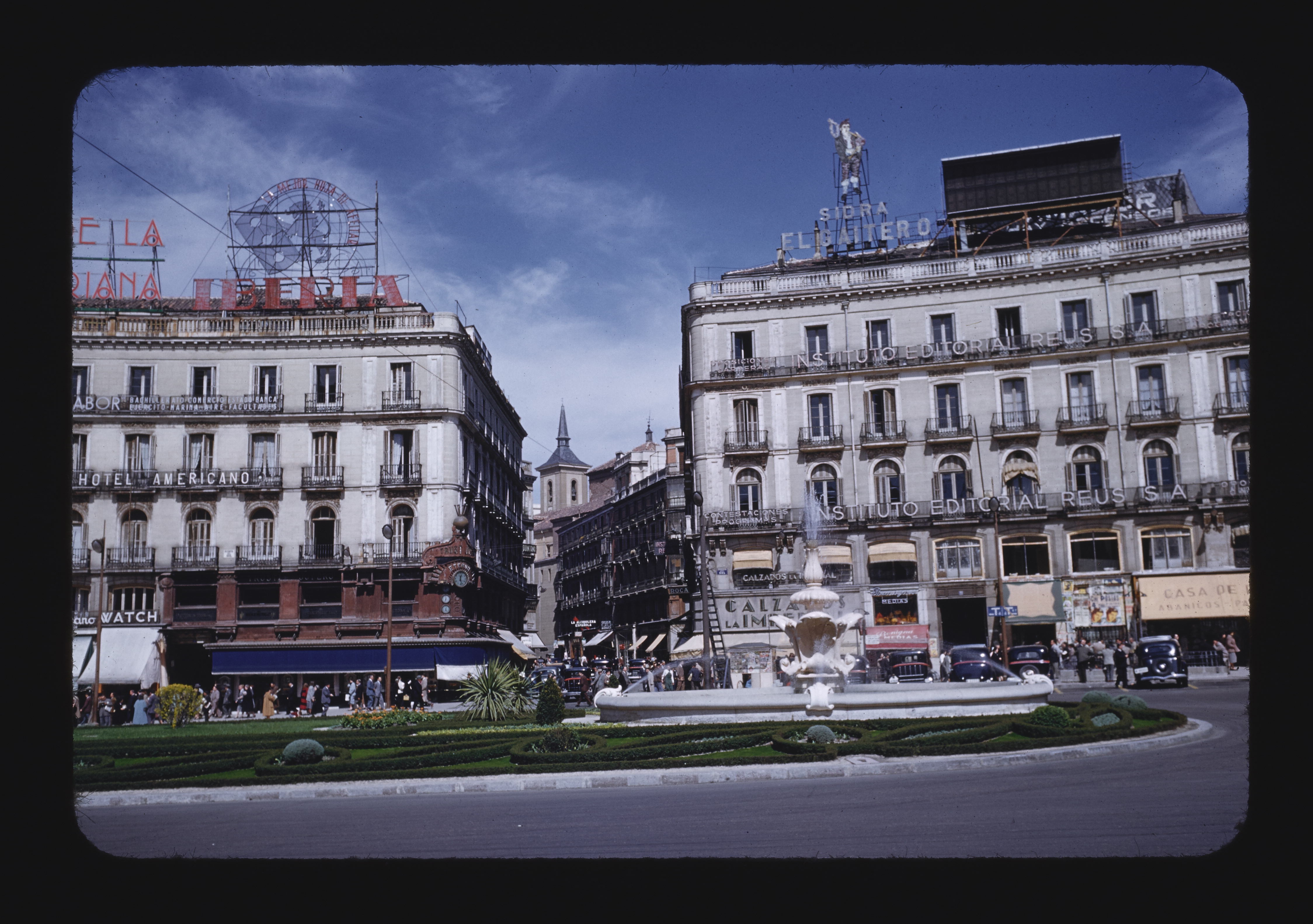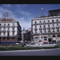 - EN buildings (structures), automobiles, window components, balconies, anonymous people, identification signs, water fountain, formal gardens, awnings