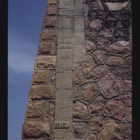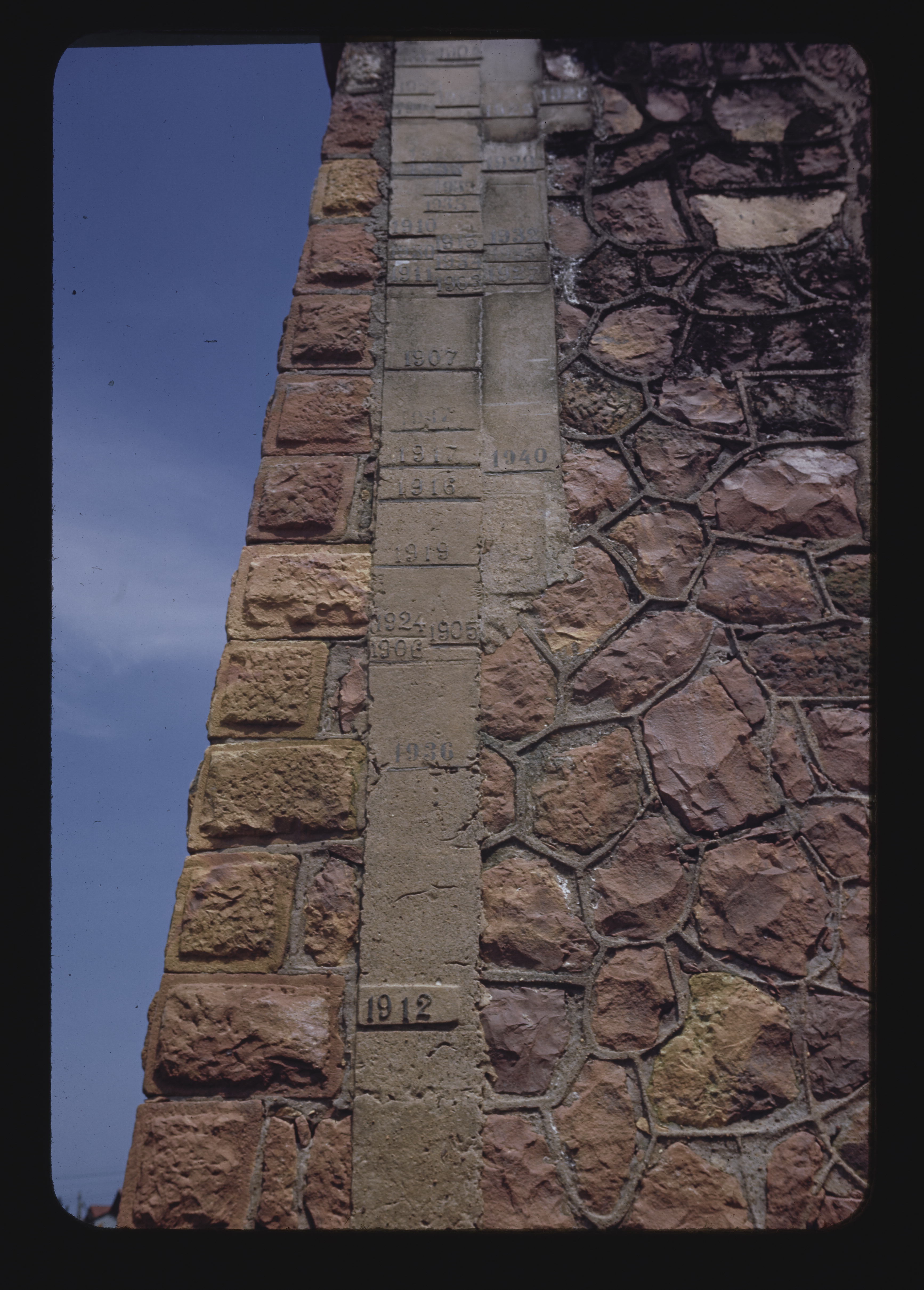 - EN Wall with high water marker recording annual rise of river