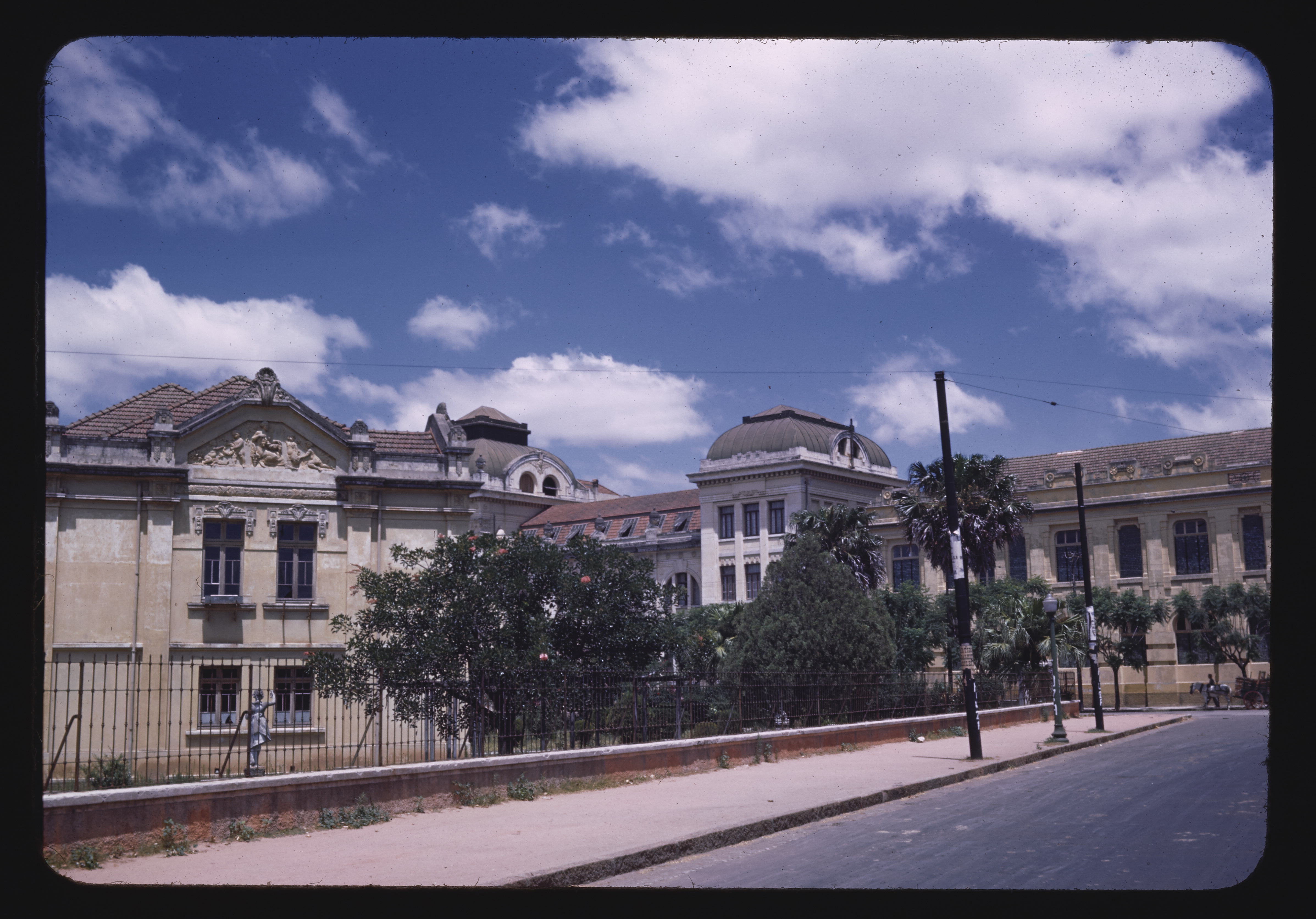 - EN buildings (structures), trees (woody plants), clouds, windows, barracks