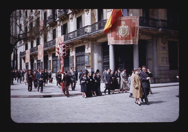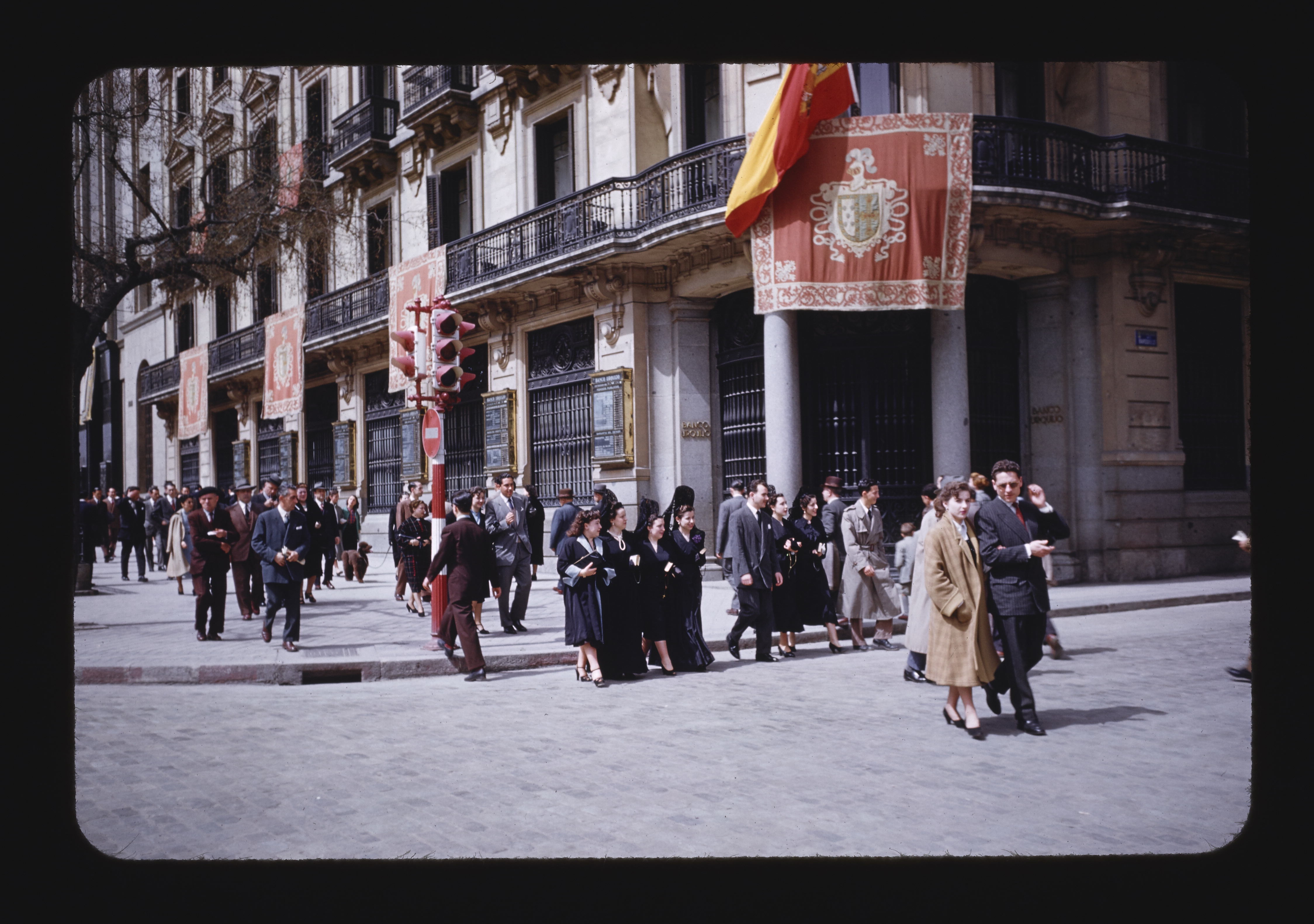 - ES edificios, personas anónimas, columnas (elemento arquitectónico), componentes de ventana, componentes de cornisa, frontones, banderas, balcones