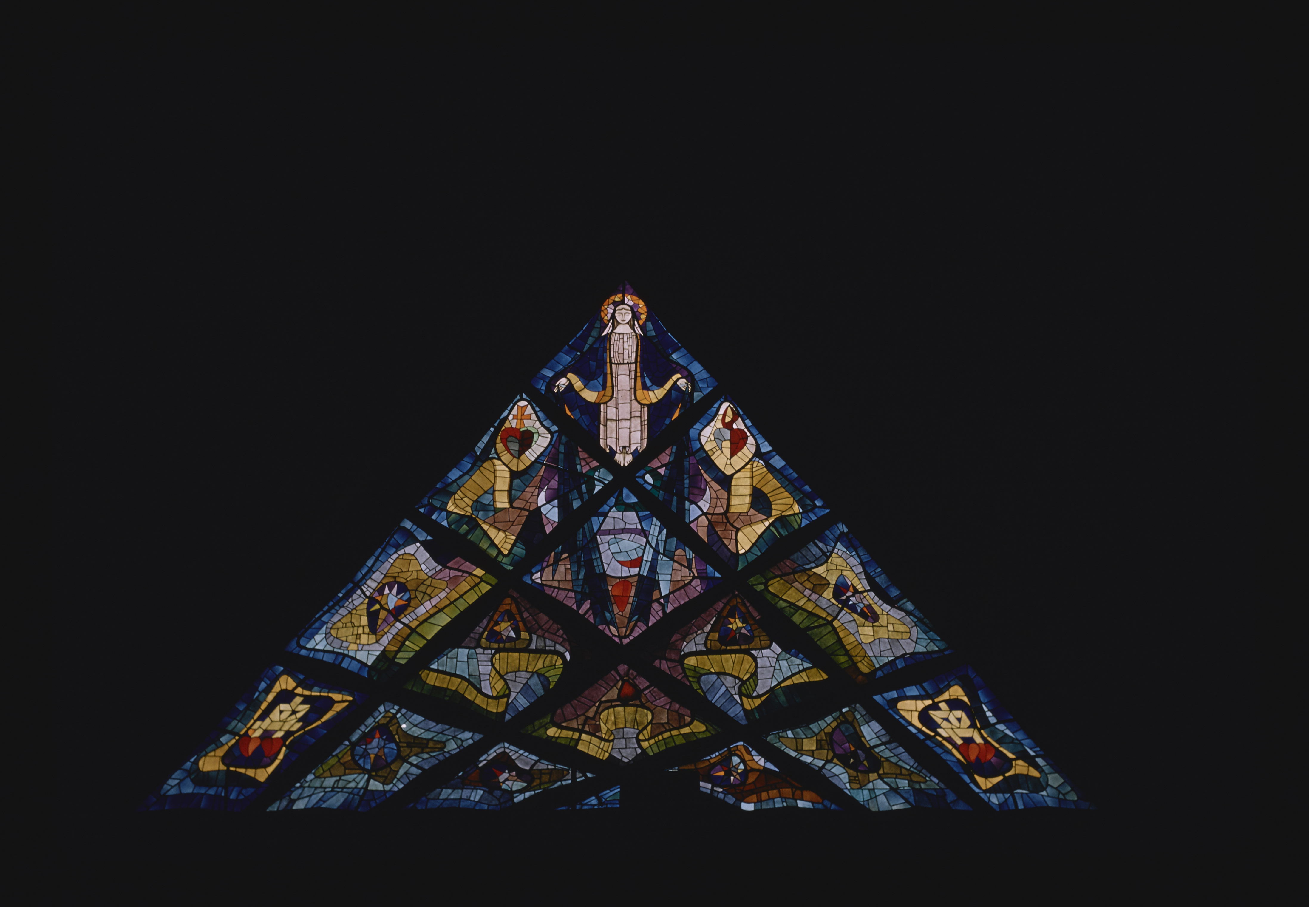 - EN Mexico, D.F. Colonia del Valle Iglesia Fatima Church of the Virgin of the Miraculous Medal Interior Stained glass window