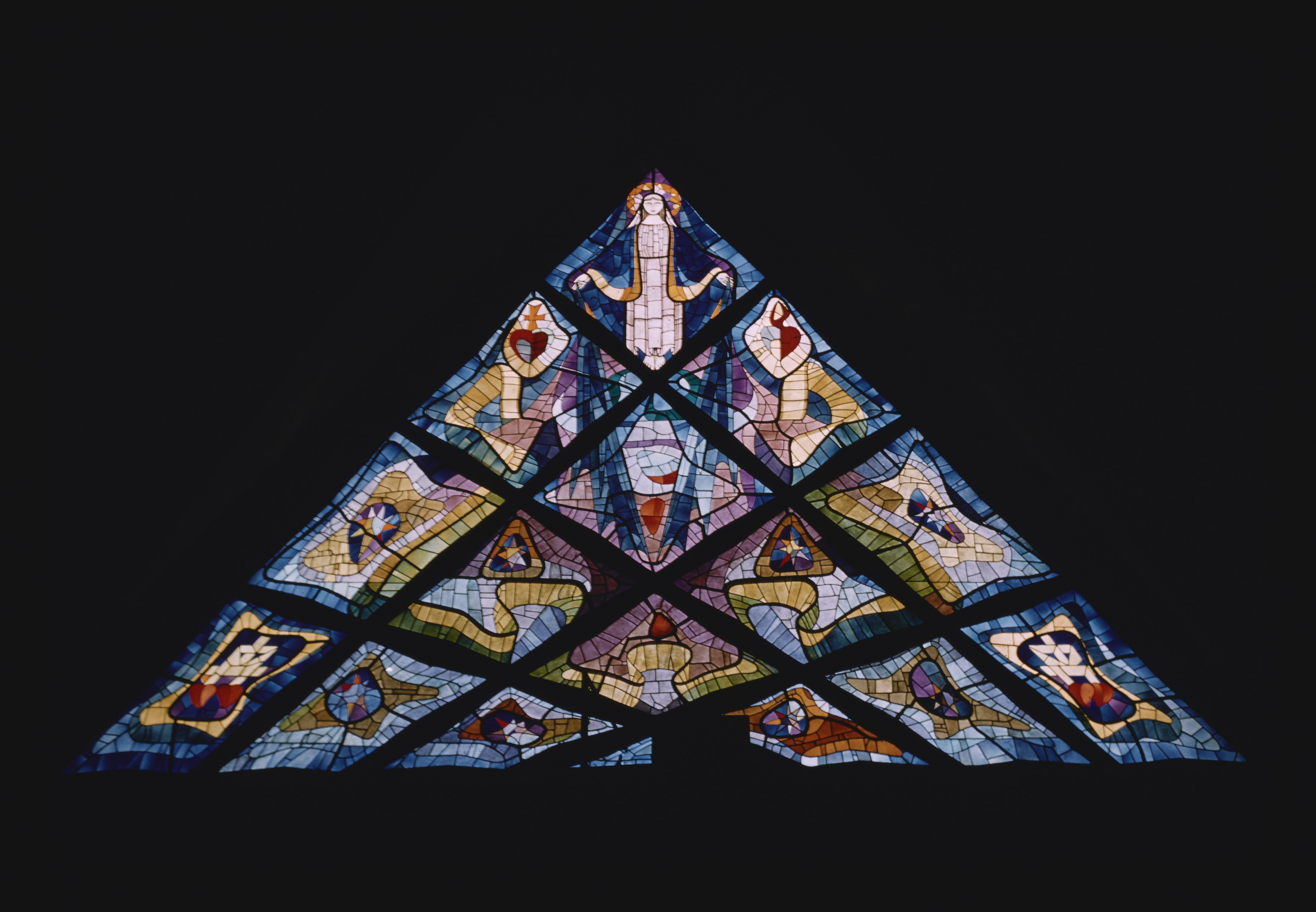 - EN Mexico, D.F. Colonia del Valle Iglesia Fatima Church of the Virgin of the Miraculous Medal Interior Stained glass window