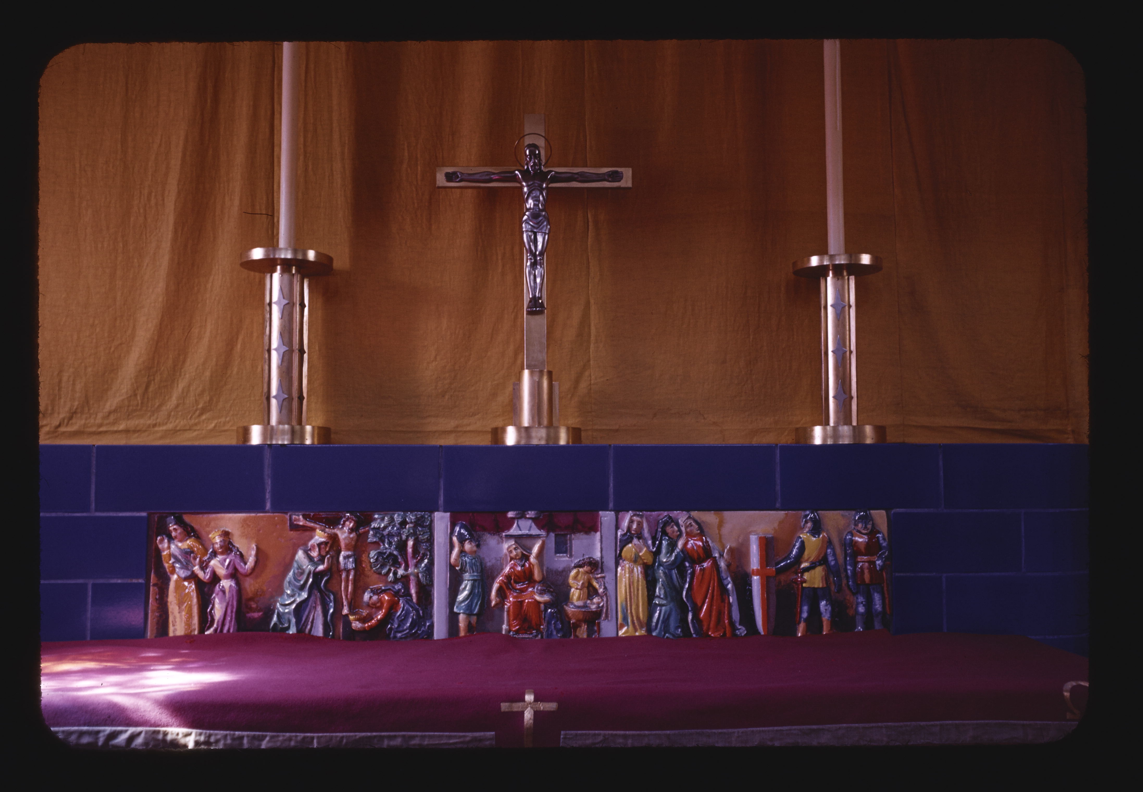 - EN churches (buildings), buildings (structures), altars (religious fixtures), crosses (visual works)