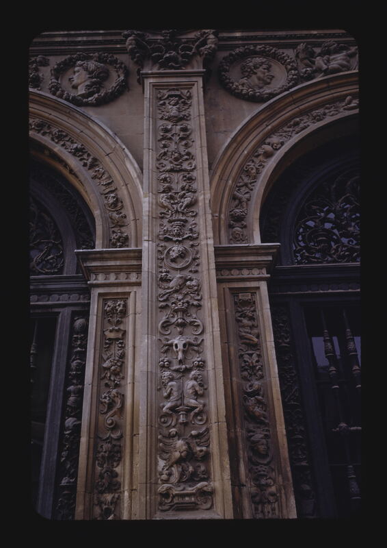- ES ayuntamientos, estilos españoles del Renacimiento-Barroco, columnas embebidas, grutesco
