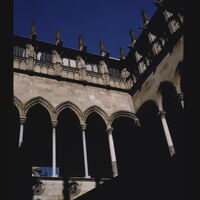 - ES portales (elemento arquitectónico), columnas (elemento arquitectónico), claustros, edificios gubernamentales, arcos apuntados, follaje, gárgolas (componente)