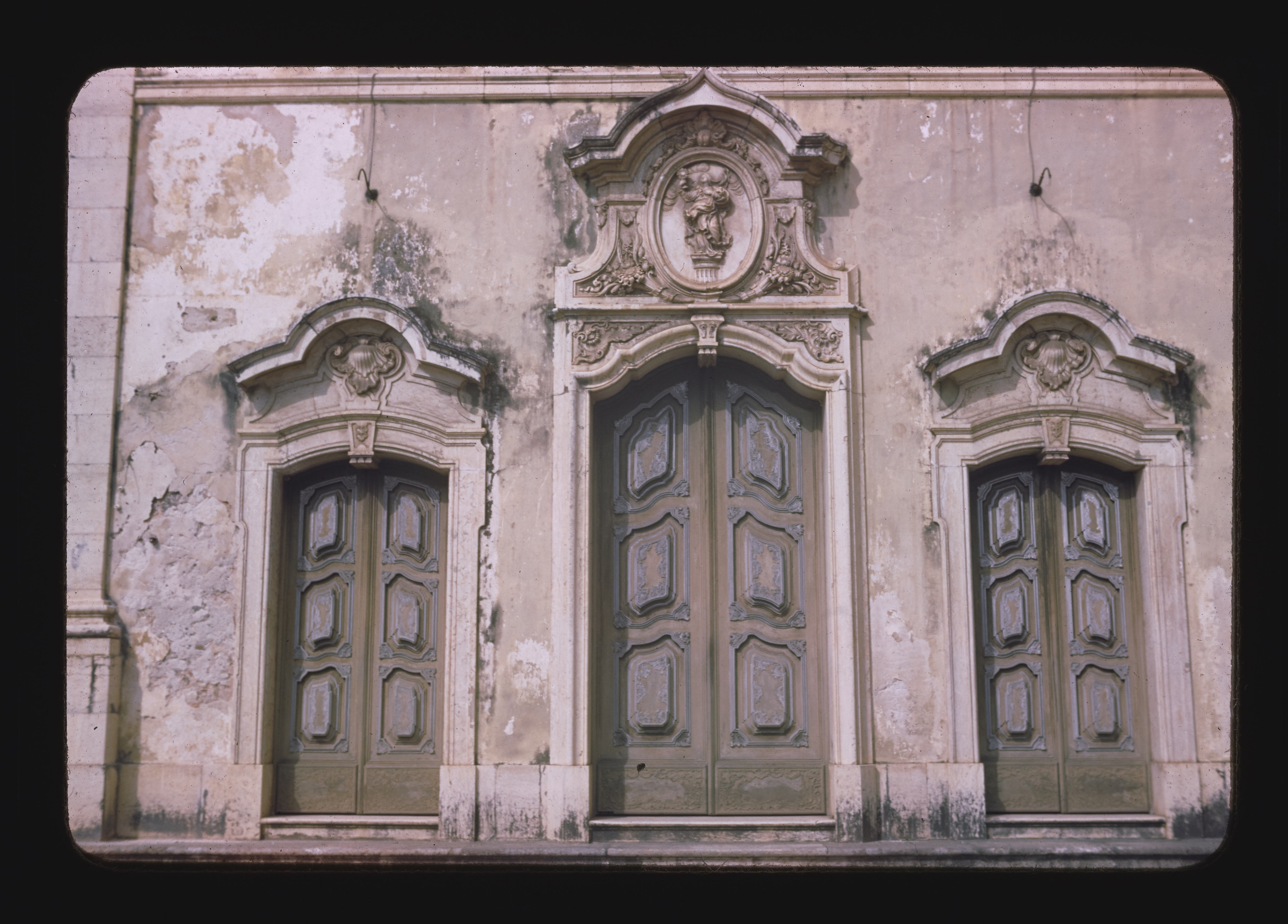 - EN Colonial Churches - Salvador, Bahia Matriz do Pilar Lower section Doors of church Oval medallion over center door contains image of Our Lady of the Pilar of Saragossa in Spain
