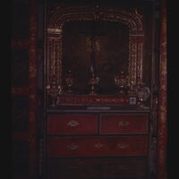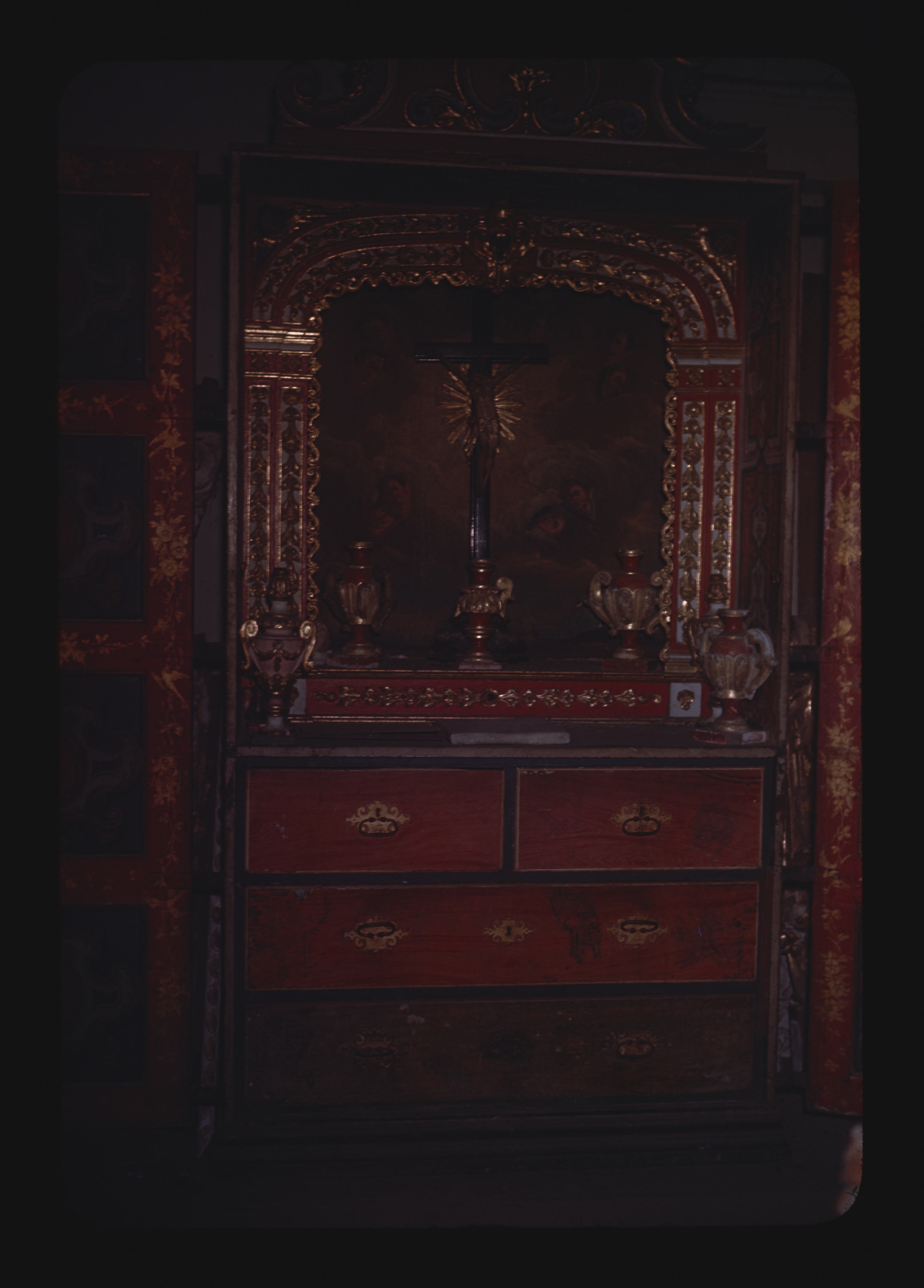 - PT Catedral da Bahia - Interior - Altar portátil com decoração de policromo vermelho e dourado no estilo chinês