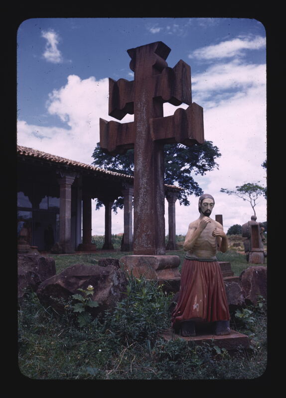 - EN State of Rio Grande do Sul Museum at Sao Miguel Outdoor cross Wooden sculpture, image of Our Lord