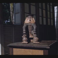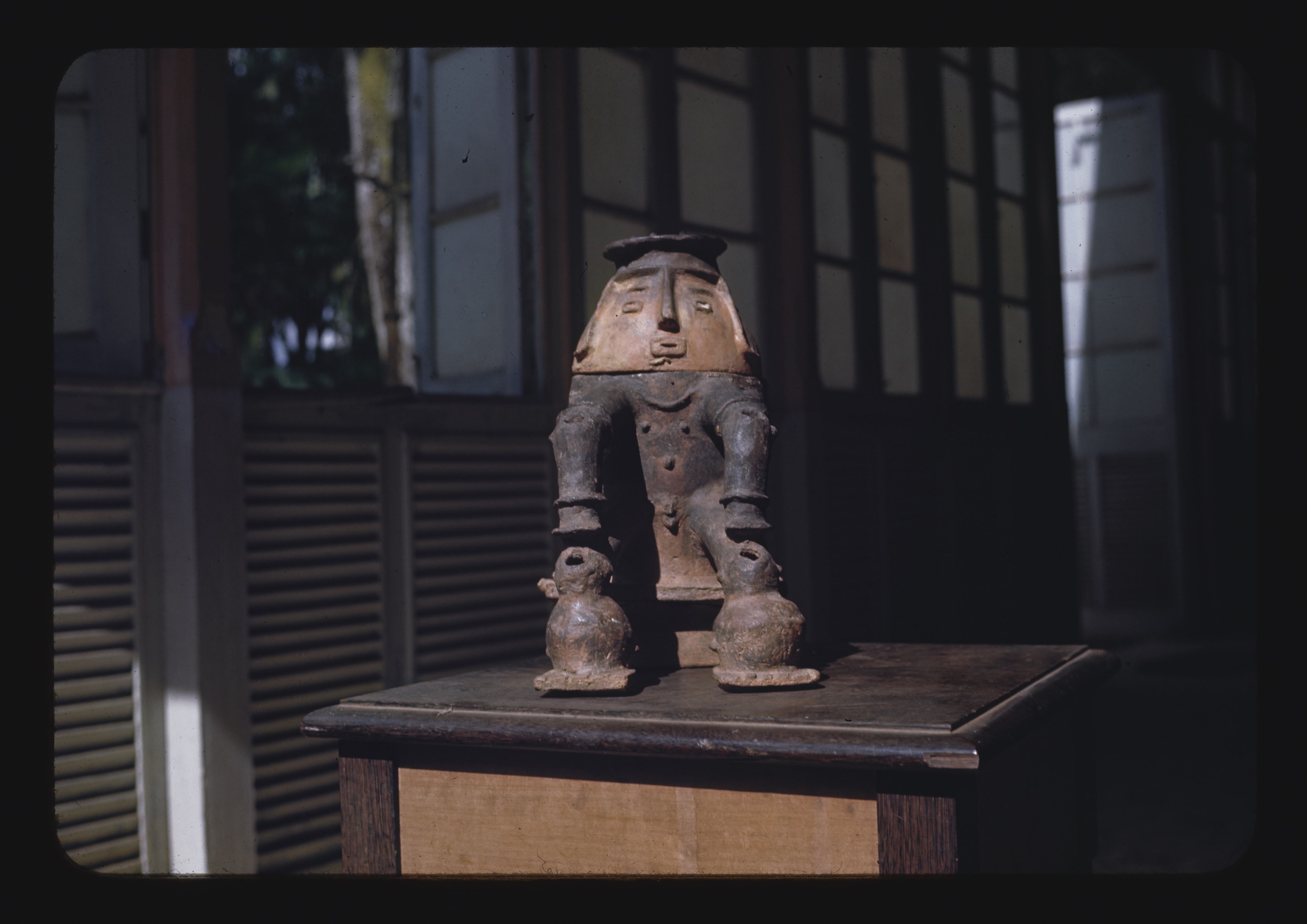 - EN Indian Pottery - Amazon Area Emilio Goeldi Museum of Pará Rio Maraca Burial urn from Rio Maraca Detail: front view showing detachable lid (head) in place