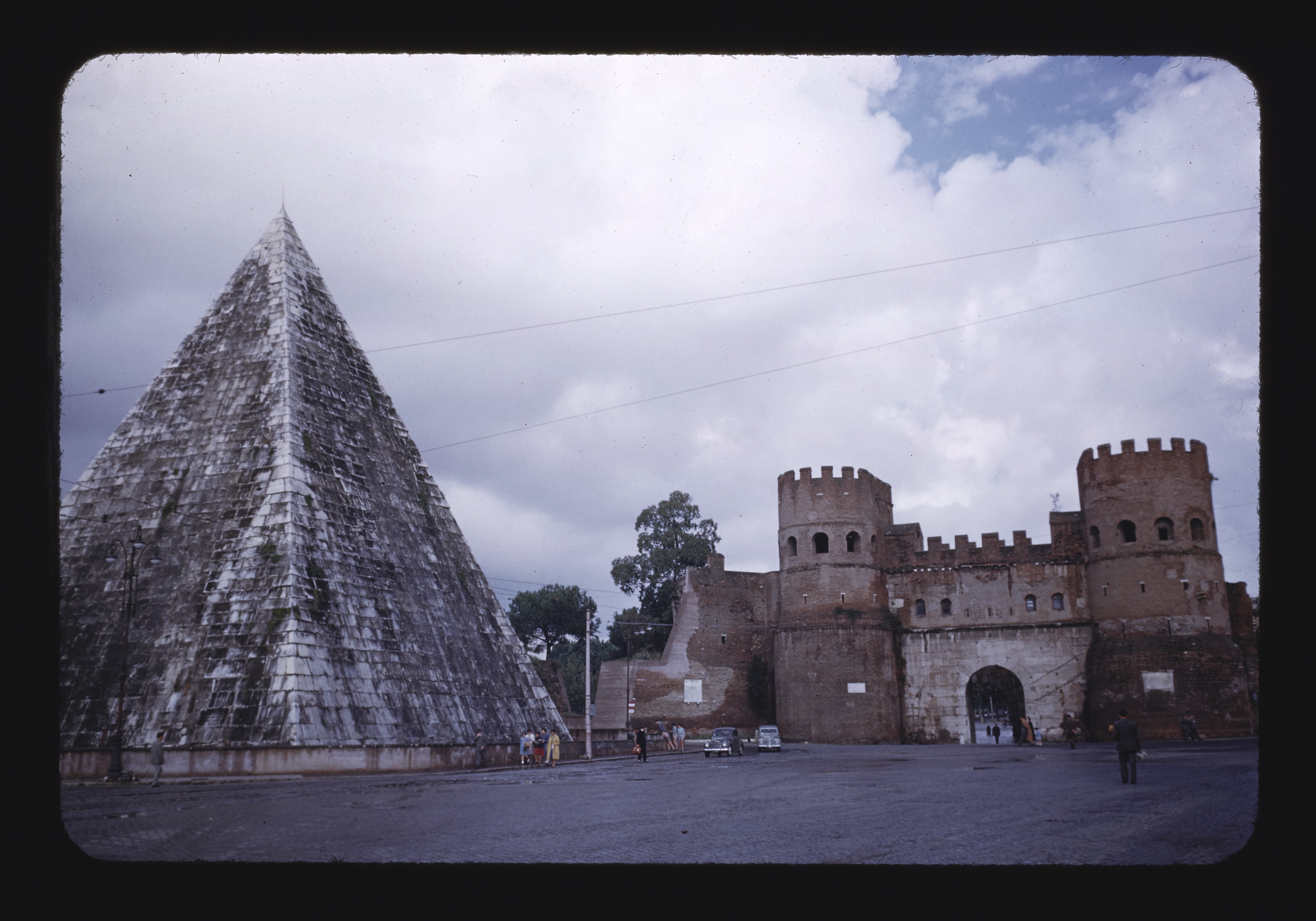 - EN Rome Porta S. Paolo Part of Aurelian Wall Restored by Emperor Honorius in 402 A.D. General view Pyramid tomb of Caius Cestius 12 B.C. General view