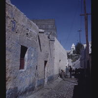 - EN A very old street with stone houses, whose walls are of colonial construction. The heavy construction is necessitated by frequent earthquakes.