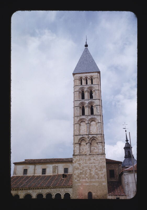 - EN Segovia Church of San Esteban Tower 13th Century External cloister General view Roof of tower rebuilt